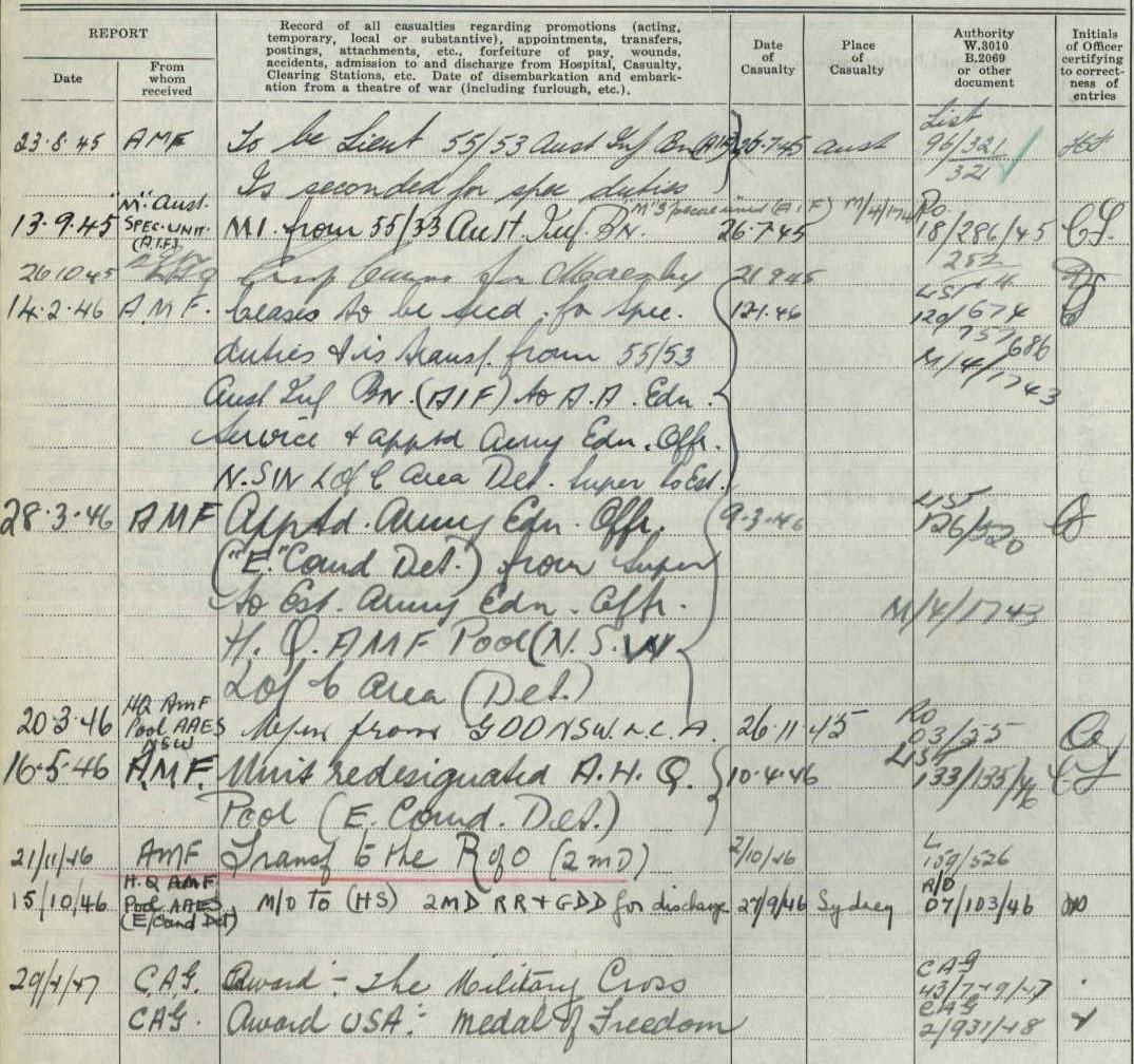 He then transferred into the AIF on March 8th 1943 [NX1515110] and then into the 1st Australian Commandos on August 25th, 1943 and was now part of the 'M' Special Unit on October 22nd, 1943.