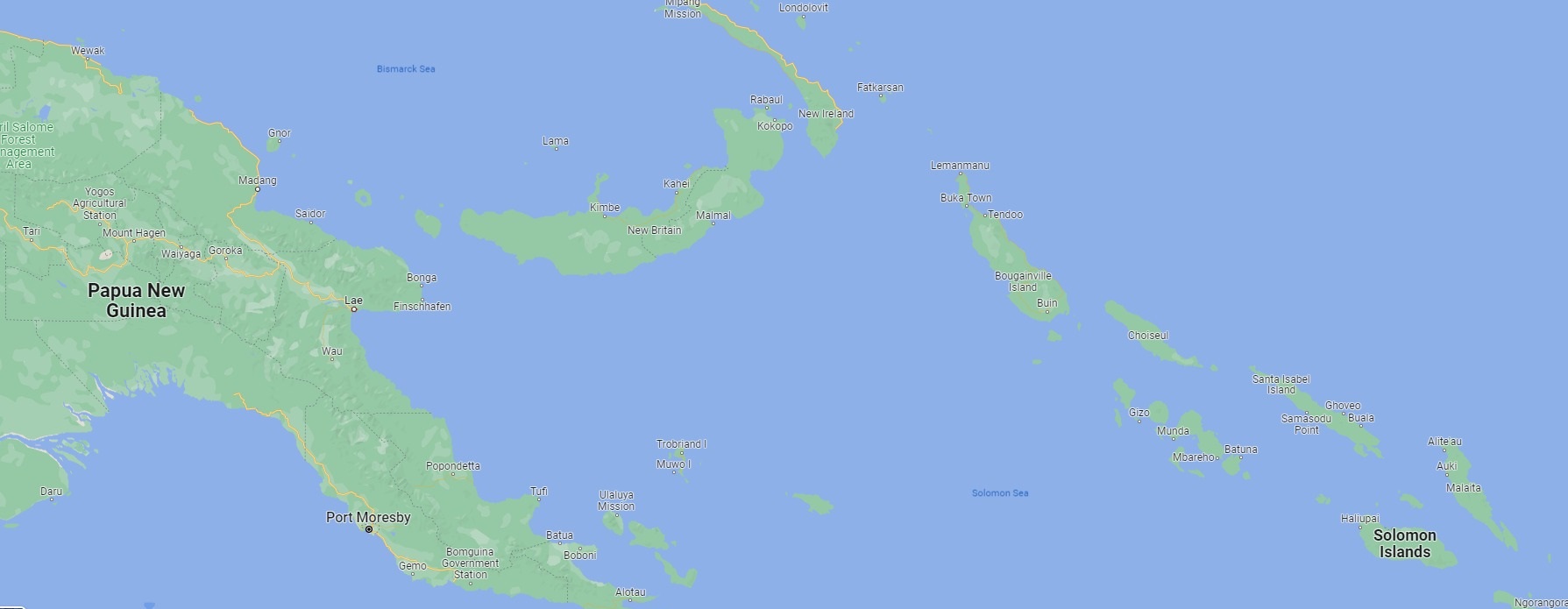 Geographically part of the Solomon Islands, but administratively part of the Territory of New Guinea at the time of the battle, Bougainville lies at the northwestern end of the Solomon Islands chain. Roughly shaped like a fiddle, the island is 125 miles (201 km) long and, at its widest point, 38 miles (61 km) across. It is dominated by thick jungle and large mountain peaks in its interior, with narrow beaches around the west coast. Situated south-east of New Britain, Bougainville offered the Allies another step in their advance through the Solomons towards the main Japanese base that had been established around Rabaul. The reduction and isolation of this base was a key Allied objective of the Operation Cartwheel. Seizure of Bougainville offered the Allies the ability to establish forward airfields from which to launch attacks against Rabaul, as well as anchorages around Empress Augusta Bay and Soraken, which could be utilised for Allied shipping. From: https://en.wikipedia.org/wiki/File:Location_of_Bougainville.jpg