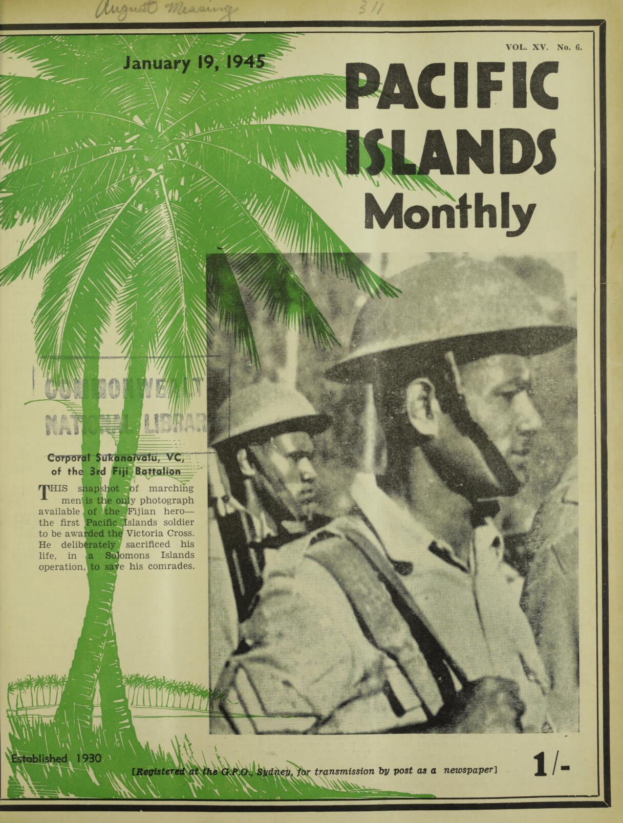 THIS snapshot Of marching men is the oily photograph available of the Fijian hero — the first Pacific Islands soldier to be awarded the Victoria Cross. He deliberately sacrificed his life, in a Solomon Islands operation,' to save his comrades. (1931). Pacific islands monthly : PIM Retrieved from http://nla.gov.au/nla.obj-315158041