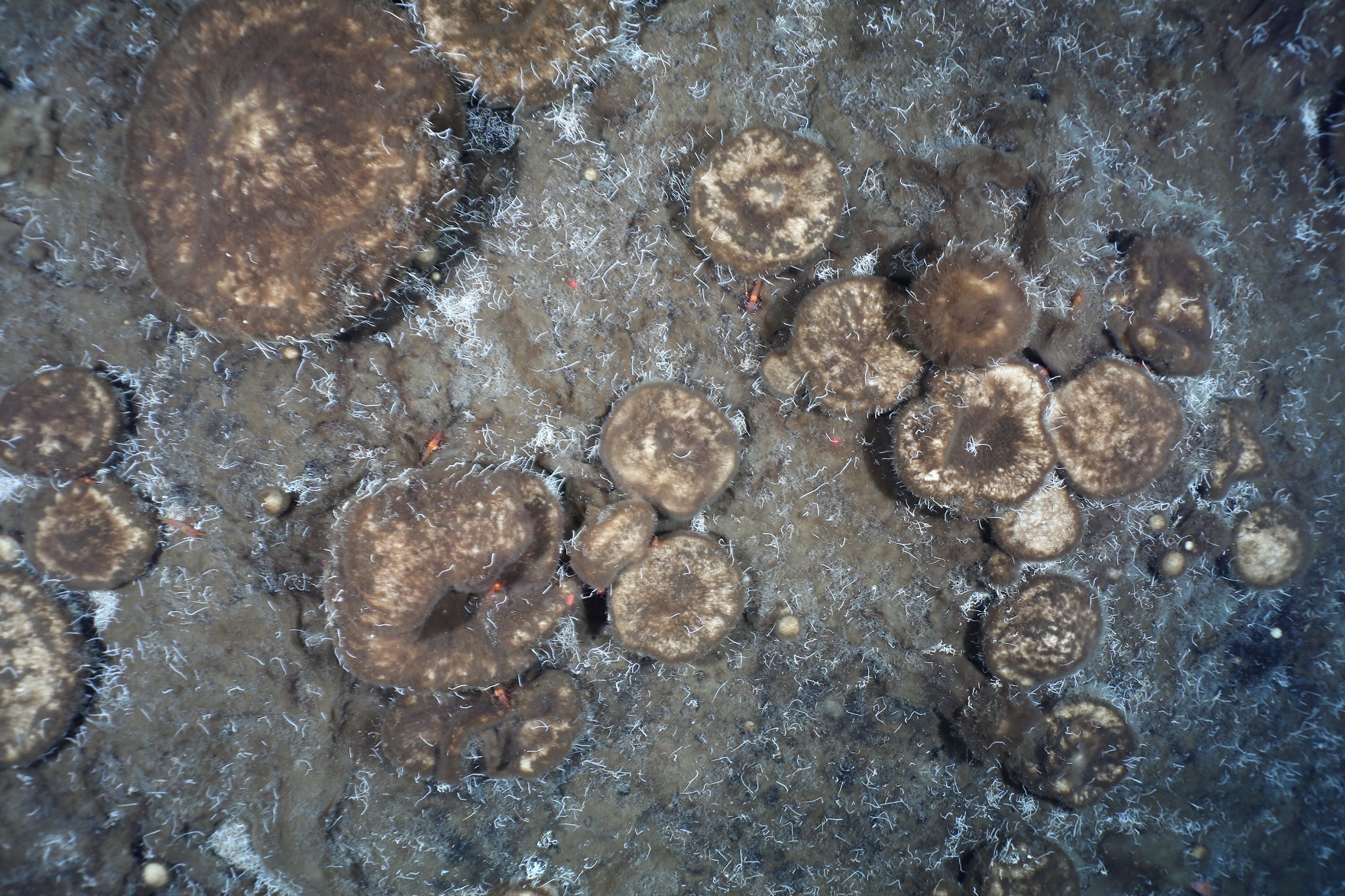 The dense sponge grounds discovered in the Arctic deep sea on the northerly Langseth Ridge seamount structure represent an astonishingly rich ecosystem, demonstrating the ability of sponges and associated microorganisms to exploit a variety of refractory food sources including fossil seep detritus. Photo: Alfred-Wegener-Institut / PS101 AWI OFOS system.