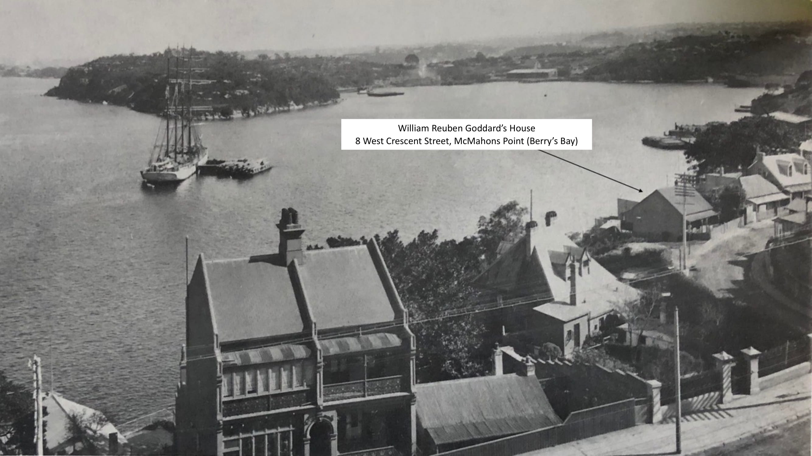 An old identity of North Sydney in the person of William Rueben Goddard, died at his residence in West-Street Blues Point, on Saturday, aged 68 years. Mr. Goddard, though a native of England, was brought out to Sydney by his parents when only two years of age, so that he spent 66 years at Blue’s Point.