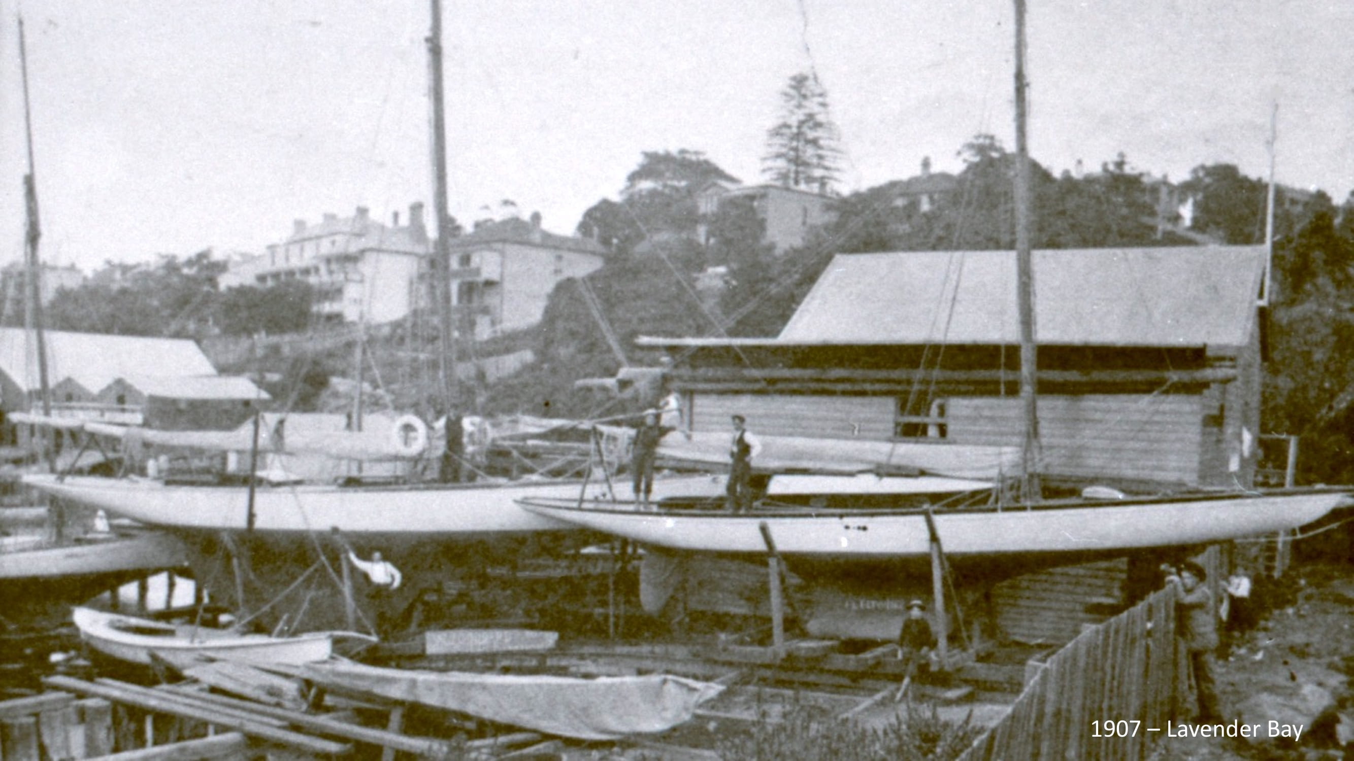 William established his boat shed in North Sydney at Berry’s Bay in the late 1800s with a workshop and yards and became well-known in the area for his fine craftsmanship. The boat shed no longer remains but was situated nearby Eaton’s Timber Yard which survived on the Berry’s Bay waterfront until the 1980s. This area is now known as Sawmiller’s Reserve at McMahon’s Point.