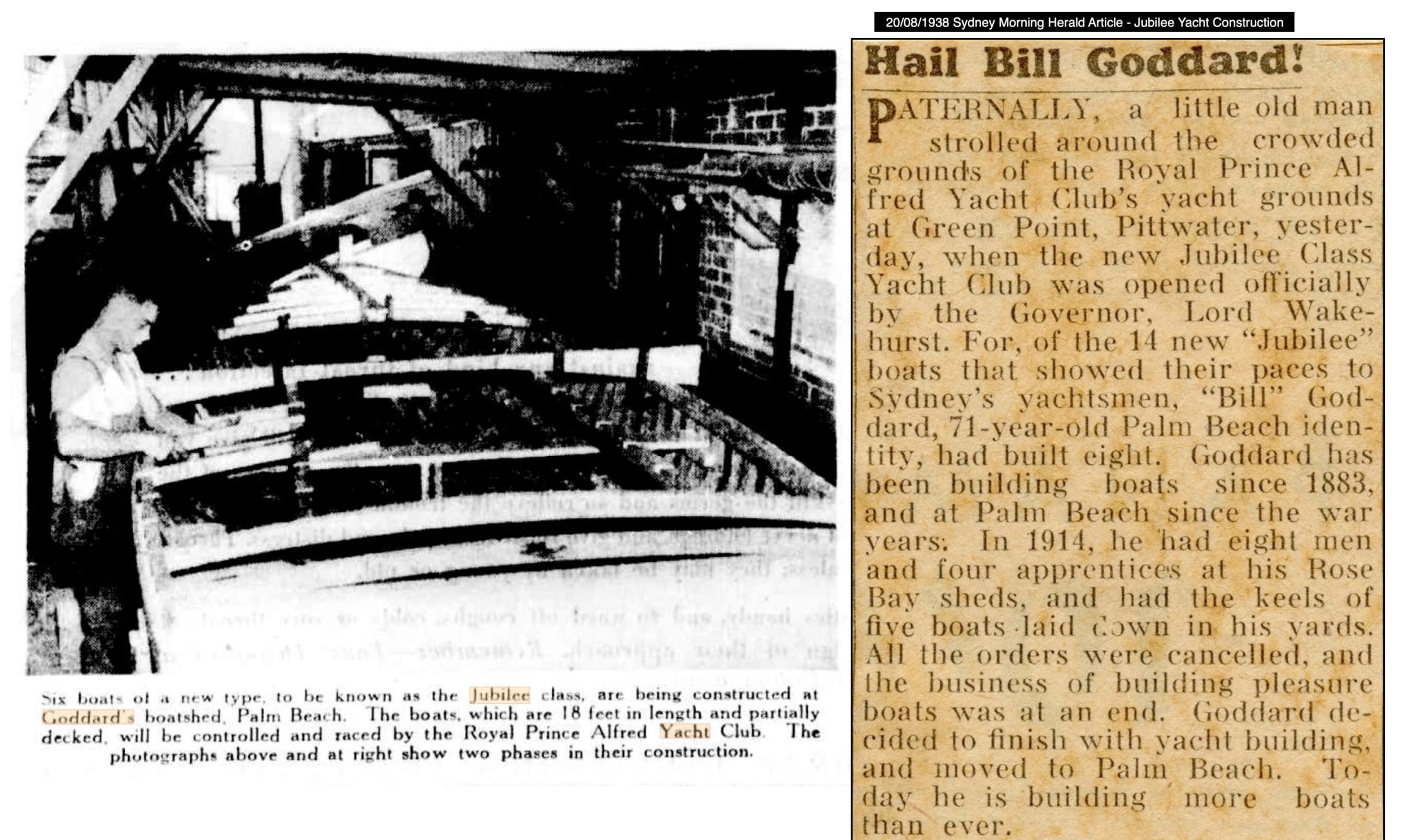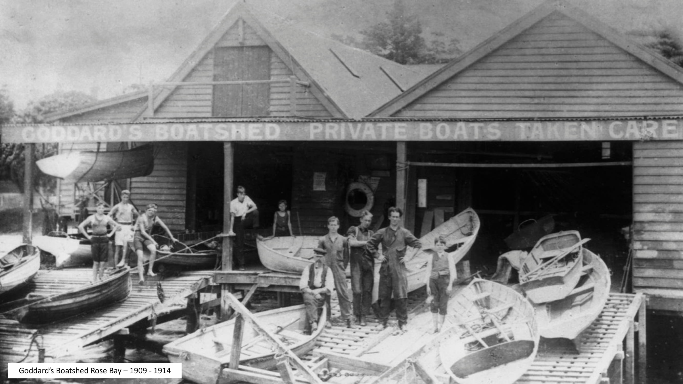 In 1919 he constructed a boat shed and began boat building. William J. Goddard & Sons were building boats between 1928 and 1939.