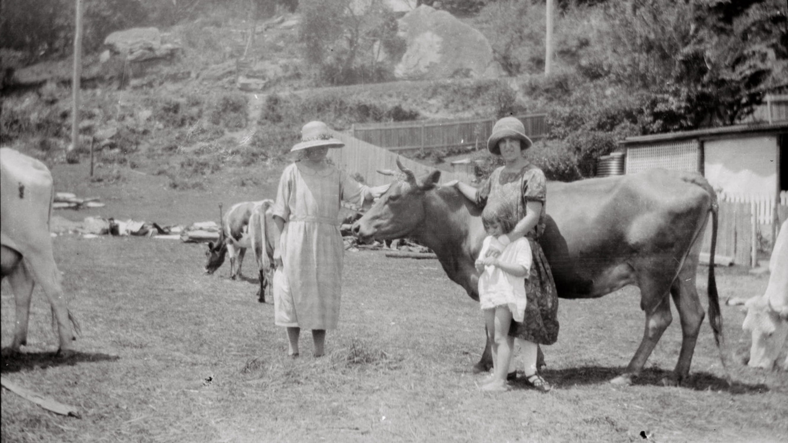 Gonsalves family home and cows in Waratah Street, Palm Beach. From Verrills family album, courtesy Peter Verrills.