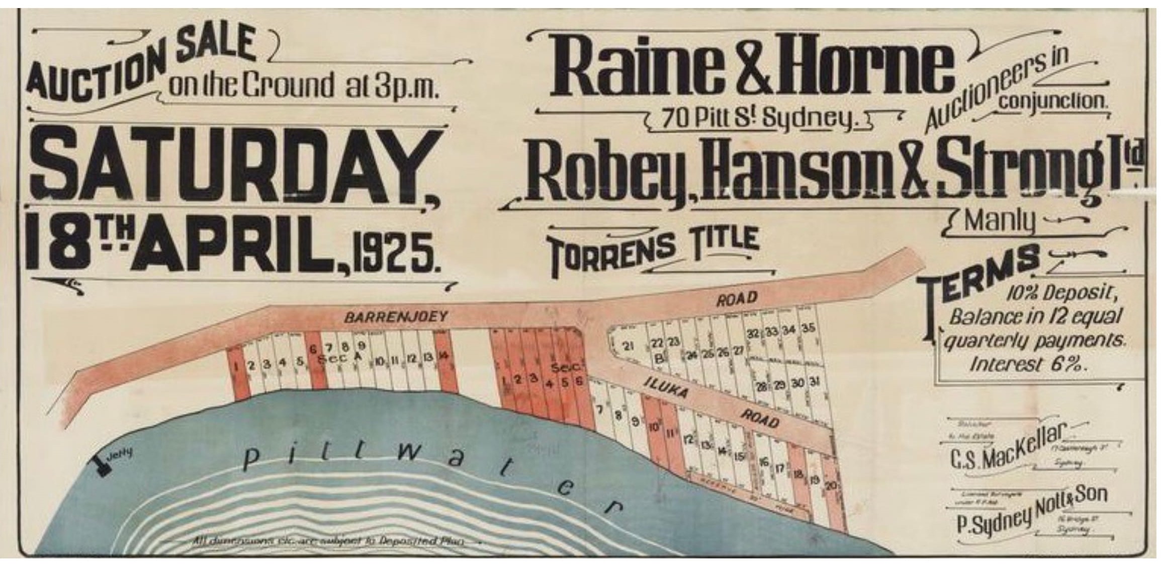 In 1926 he bought two lots of land around in Iluka Road, Palm Beach, facing the estuary, lots 6 and 7 in Iluka road: