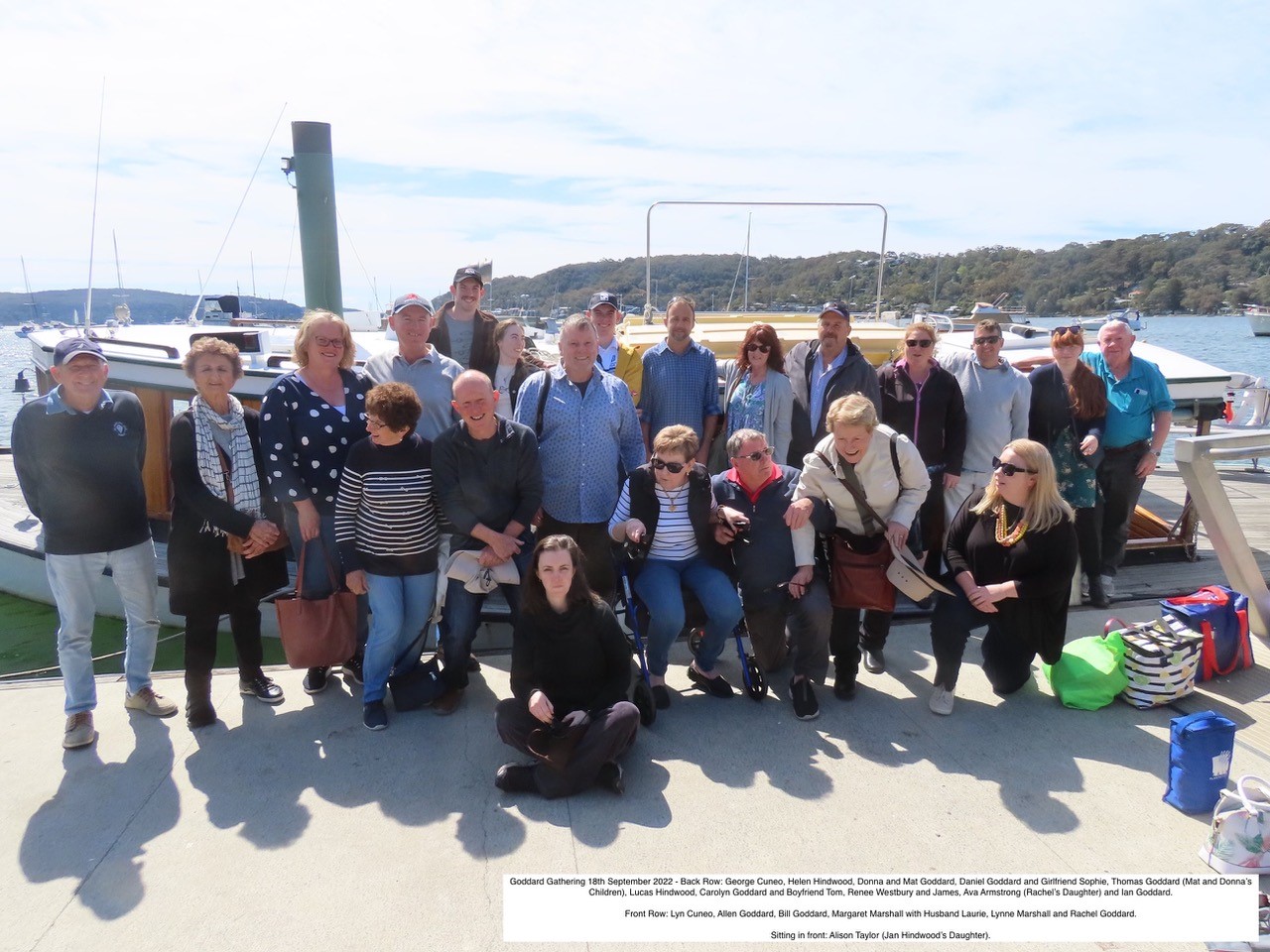 On September 18, 2022 a Goddard family reunion took place on the Reliance, that wonderful old ferry and mail boat of Pittwater that had been built by their ancestors. The Reliance has recently been sold and will leave our waters, heading south to Lake Burley Griffin to be of service there.
