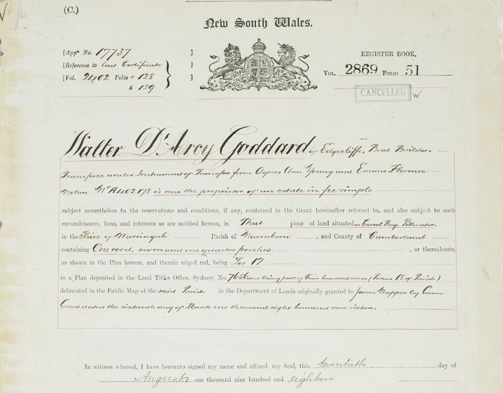 After William Joseph Goddard purchased two blocks of land in 1926 he applied for and was granted a Special Lease for a jetty as well as kerbing and guttering through Warringah Shire Council: