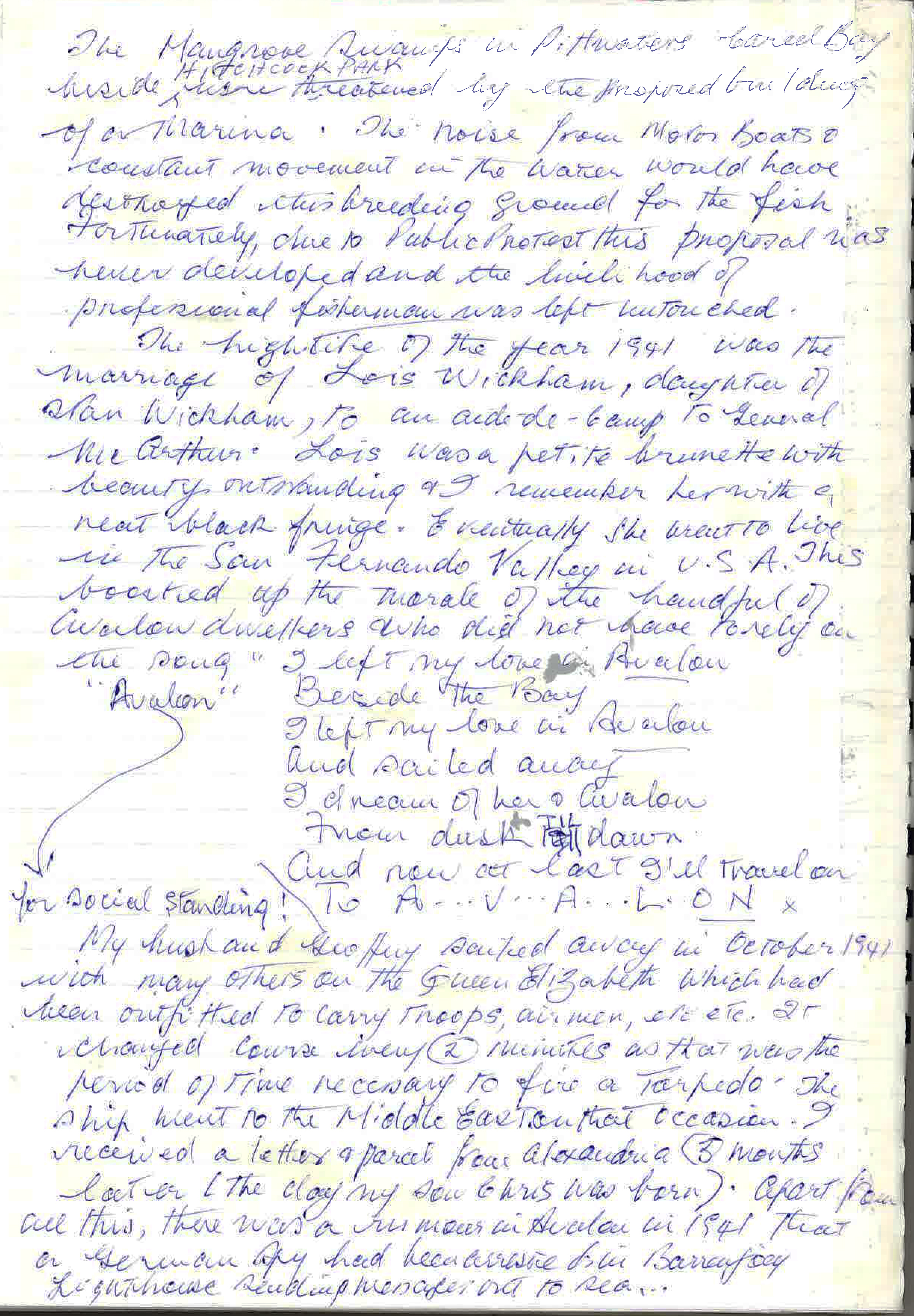 In the year 2000, I was completing a university project on Avalon and its early history. I asked my friend Adam Bayes’ Granny Grace to write down some reminisces for me, for it was clear she had lived in Avalon for some time.