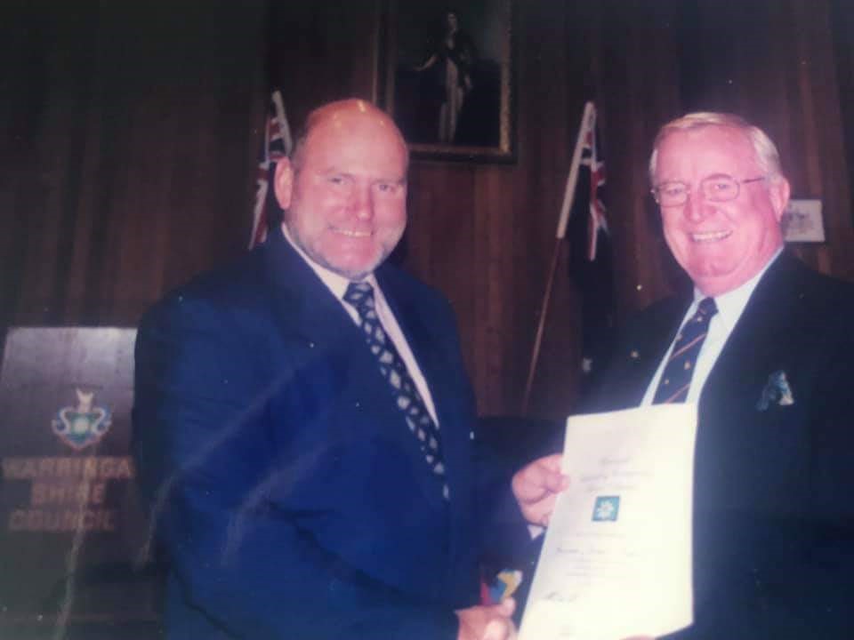 Receiving Warringah Shire Council’s Outstanding Community Service Award - The Zom and Former Shire President of Warringah, Brian Green. Photo courtesy Vincent De Luca OAM
