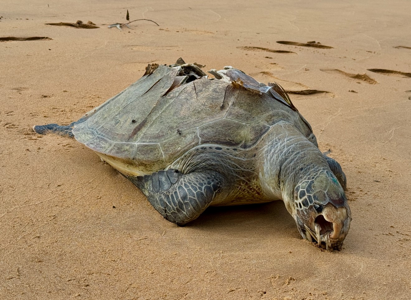 Pittwater resident Madeleine B. found the body of a large Green Turtle on a small beach on the estuary this past week, clearly showing on its carapace it had been struck and ripped apart from a boat strike.