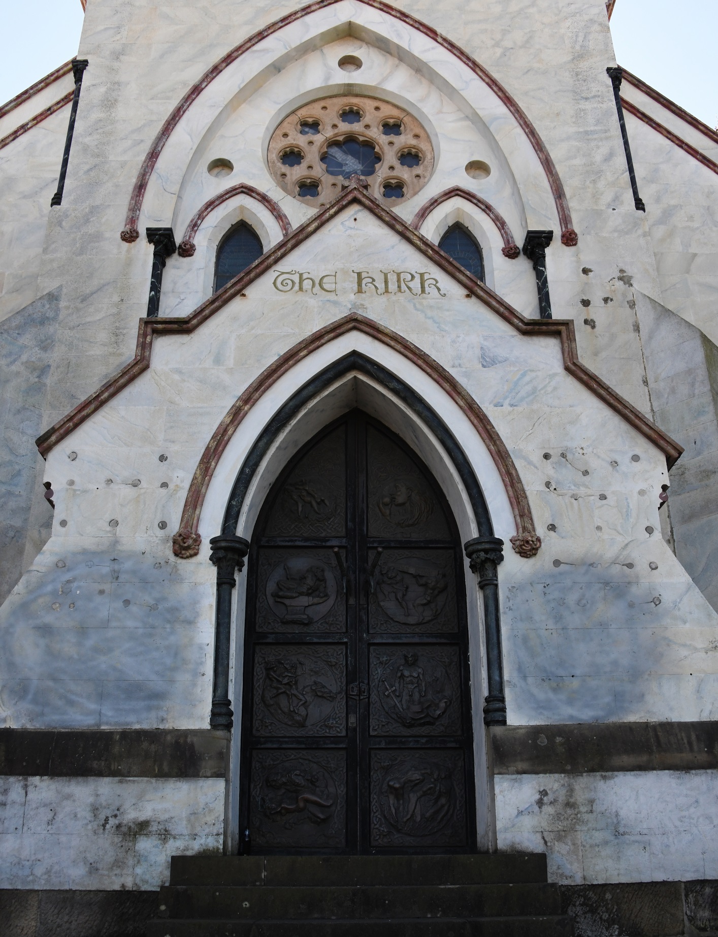 The Kirk, as is, is a brick and rendered masonry church in the Victorian Gothic style.