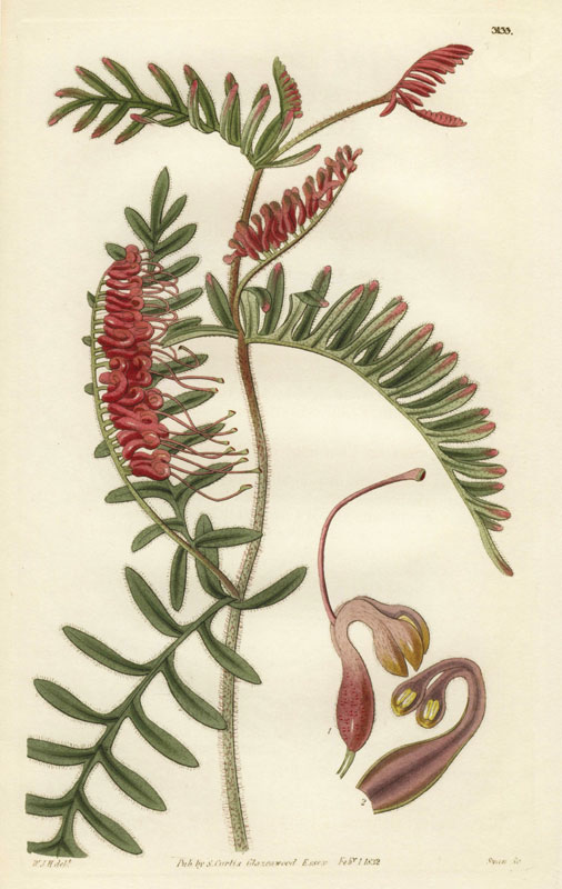 Grevillea caleyi, drawn 1832 by William Jackson Hooker (1785-1865)