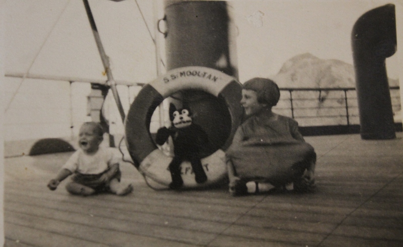 I was nine months when I went to England. The ship was three years being built so we stayed in Barrow in England. My father joined the Otway to come back here but my mother and I had to come by passenger ship. This took about six weeks. My mother was a very bad sailor and I believe all the waiters used to look after me because I was nine months old and not getting around much at that age, but mum was taken to her cabin for most of that time.