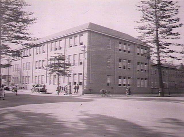 The first floor is devoted to classrooms, the headmistress's room, staff room, stores, and an assembly hall. On the second floor there are additional class-rooms, a typing room, and a library. The building, which provides accommodation for 720 pupils, was erected as an unemployment relief work, at an estimated cost of £15,200, by the Building Construction Industrial Undertaking, under the supervision of the Government Architect, from plans prepared in his office. Building AND CONSTRUCTION. (1931, October 20). The Sydney Morning Herald (NSW : 1842 - 1954), p. 5. Retrieved from http://nla.gov.au/nla.news-article16802600 Picture of Domestic science School, Manly from GPO locations, image No: D1-28553r, Courtesy State Library of NSW
