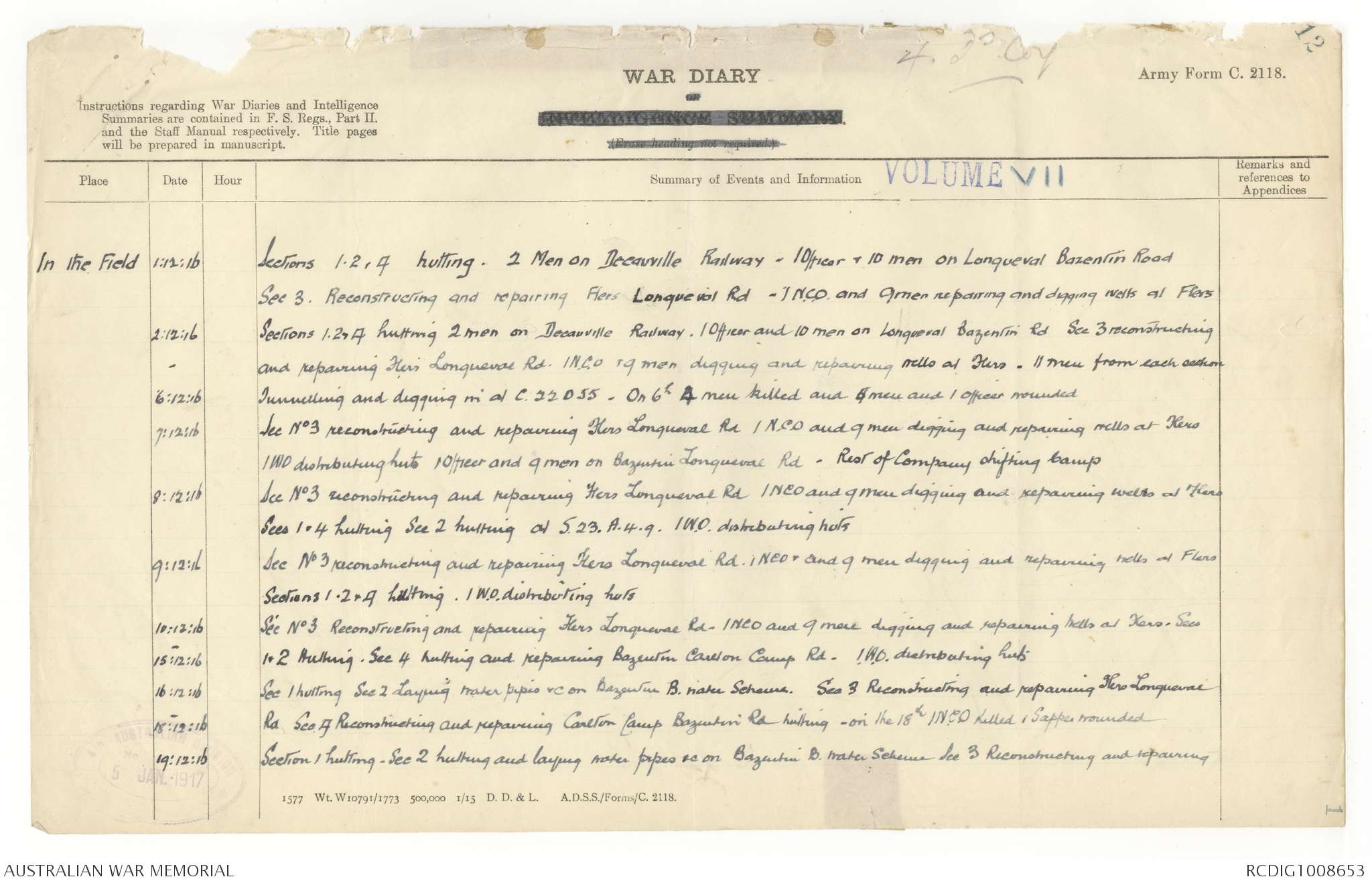 Although historians and records indicate this battle was finished by November 18th 1916 as both sides tried to survive the weather, clearly that didn't stop shells killing people. More than three million men fought in the battle and one million men were wounded or killed, making it one of the deadliest battles in human history. The 57,470 casualties suffered by the British, including 19,240 killed, were the worst in the history of the British Army. In less than seven weeks in the fighting at Pozières and Mouquet Farm three Australian divisions suffered 23,000 casualties. Of these, 6,800 men were killed or died of wounds.