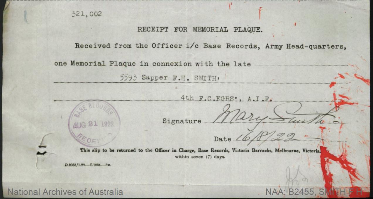 Source: AWM145 Roll of Honour cards, 1914-1918 War, Army