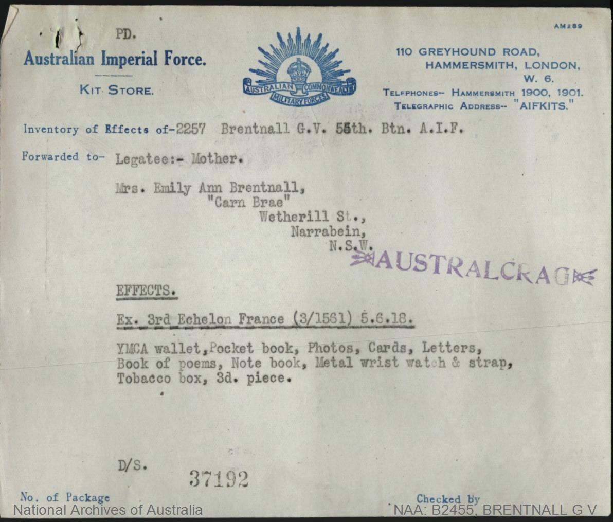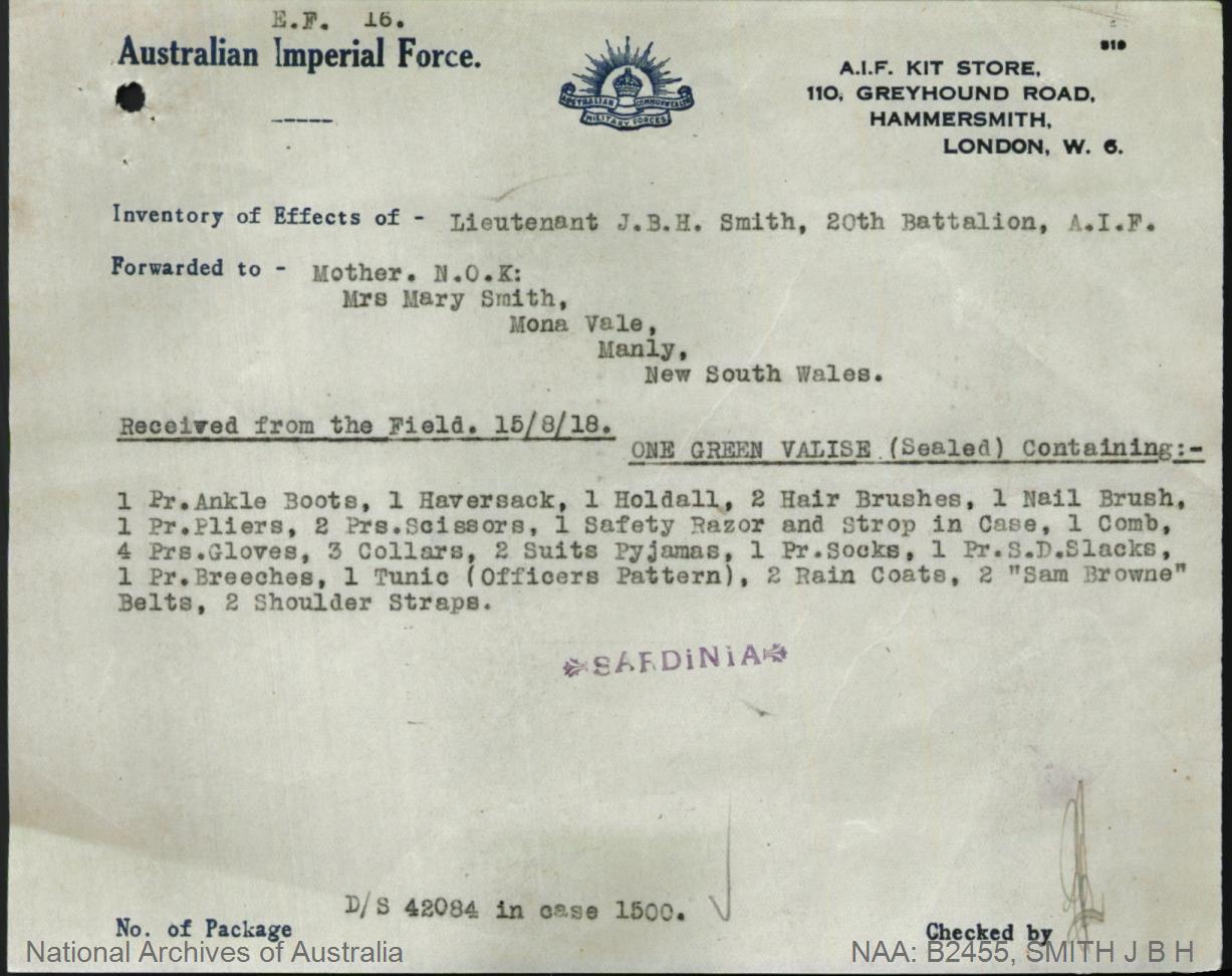 Among the items listed many of these packages list ‘photos’. Although some of these may have been the places these Australians visited while in France, most of them would have been of loved ones back home – just as those loved ones would have held a photo here of that serving son or daughter.