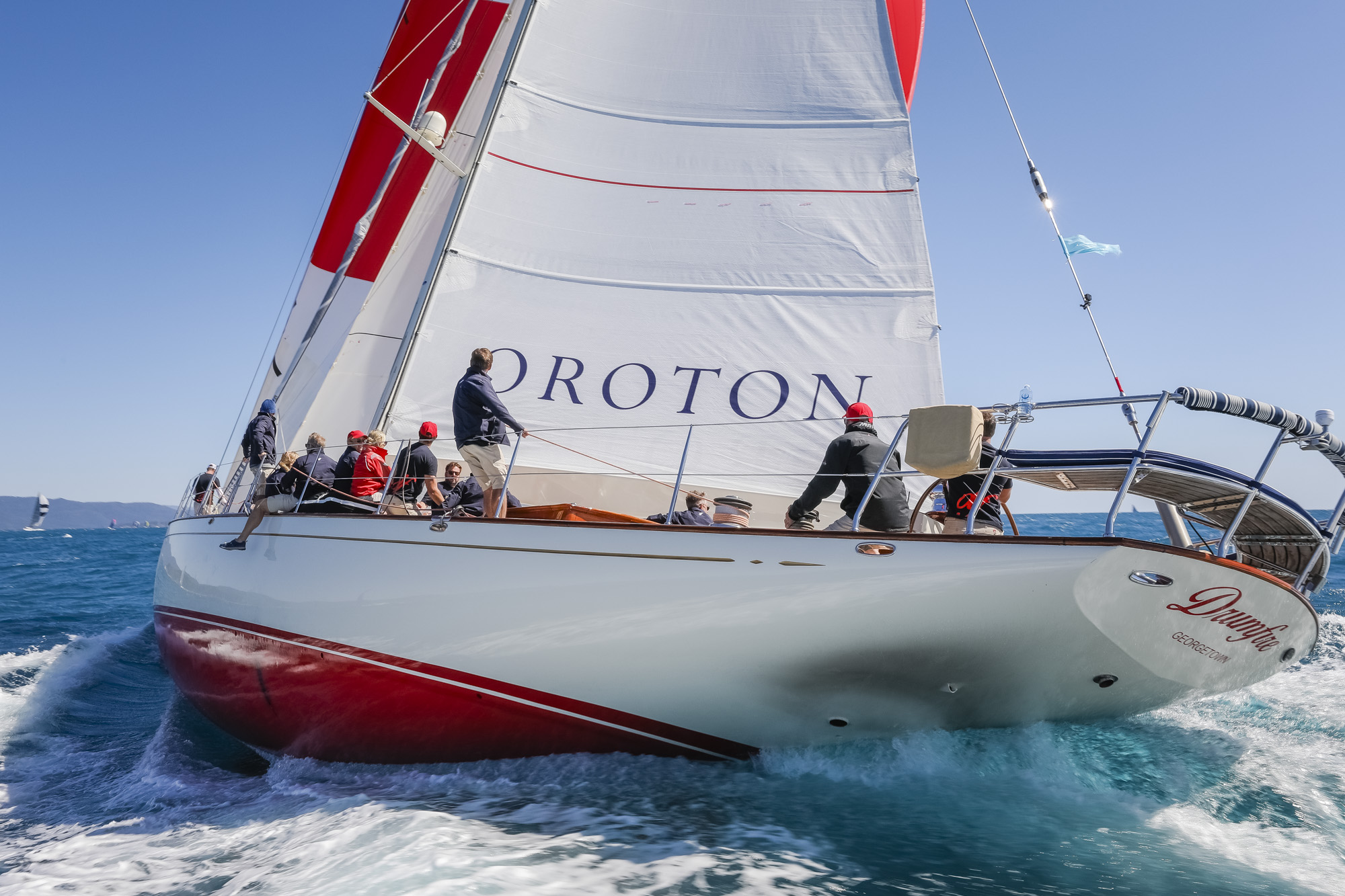 Hamilton Island division 1 leader Drumfire, Phillip Neil’s superb Hoek TC78 design, is ahead of Robert Vaughan’s Muir 64 Van Diemen III on a countback in the pointscore for what should be renamed ‘the grand division’ with the beautiful hull shapes of the classic designs among the vintage maxis such as Condor.