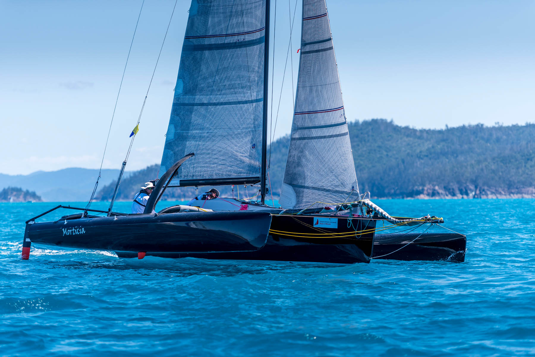 Rod White, whose Farrier 8.2 trimaran Agape is in second position in Hamilton Island Multihull Division 1, is hoping that the Kiwis will get distracted by the beautiful island scenery, but is also enjoying the closeness of the racing: “The handicappers often get a bad rap, but it’s their job to keep it close across such different types and sizes of boats and I think they do a really good job at Race Week.”.