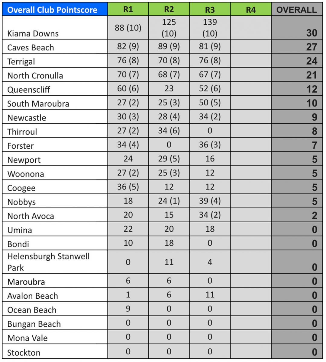 At the end of the four-event rounds, the club with the top points will be awarded the title of NSW Premiers.