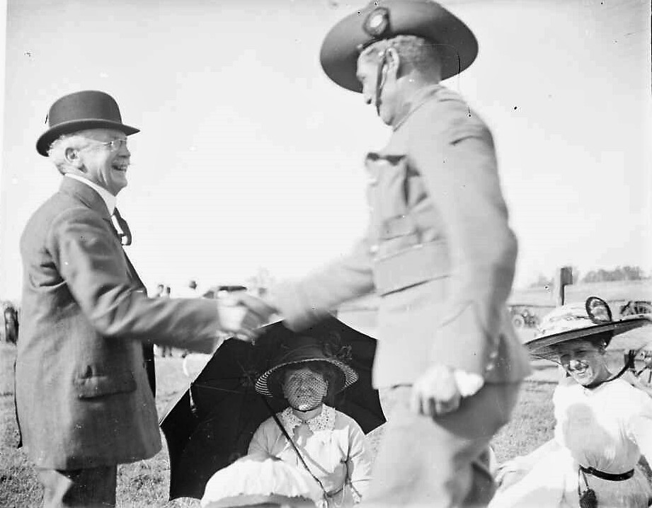 Cazneaux, Harold. (1915). Pierce Mott Cazneau shaking hands with his son, King, ca. 1915 Courtesy National Library of Australia. Retrieved from http://nla.gov.au/nla.obj-144141705