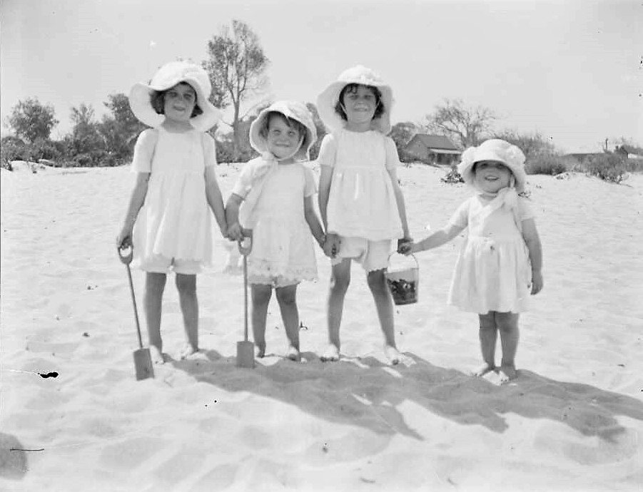Cazneaux, Harold. (1915). Jean, Beryl, Rainbow and Carmen at the beach, North Sydney, 1915 Courtesy National Library of Australia Retrieved from http://nla.gov.au/nla.obj-144143173