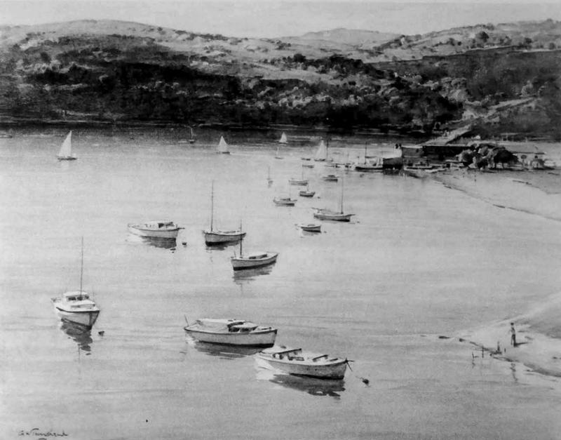 Mr. Lloyd's Fishing Shack at Long Reef. Painting by G K Townshend - courtesy 'SavaLloyd'.