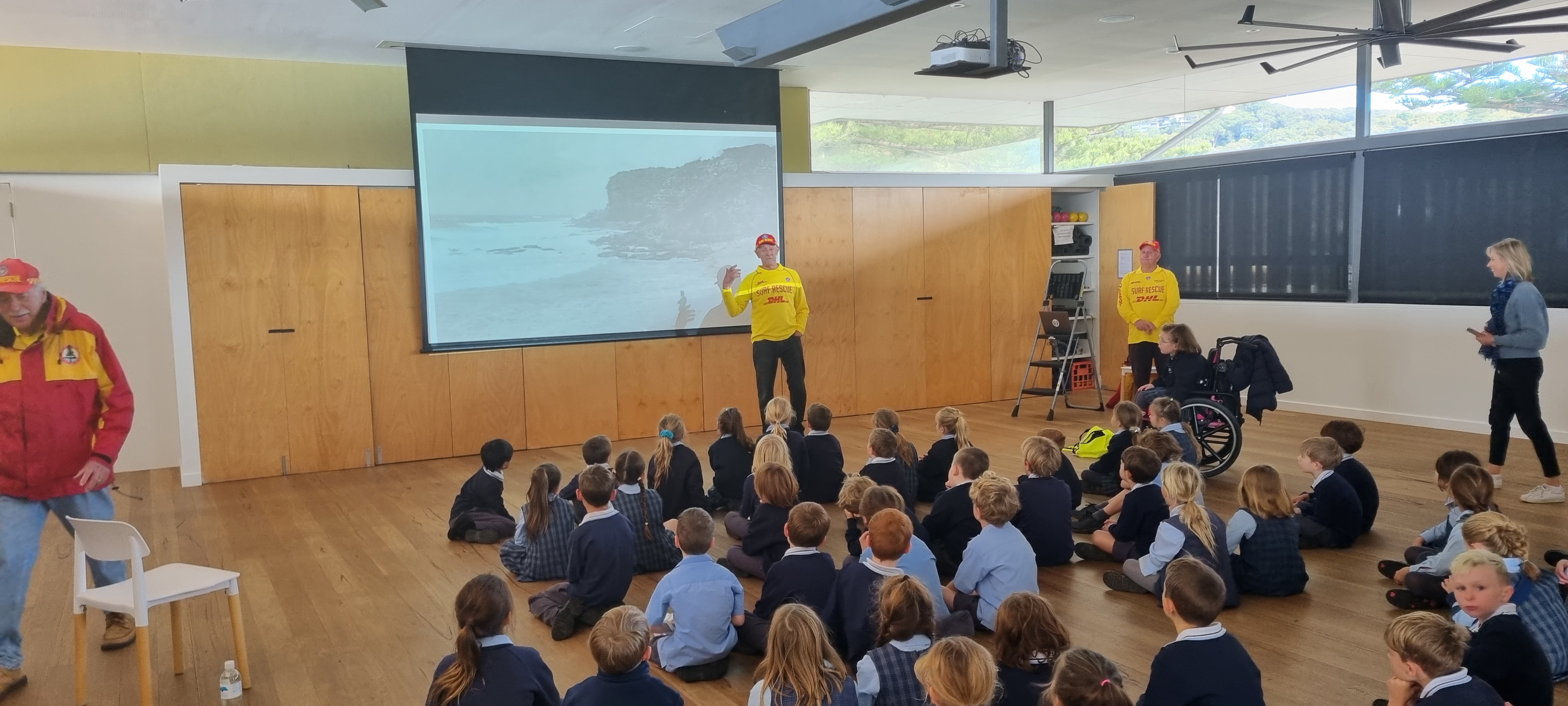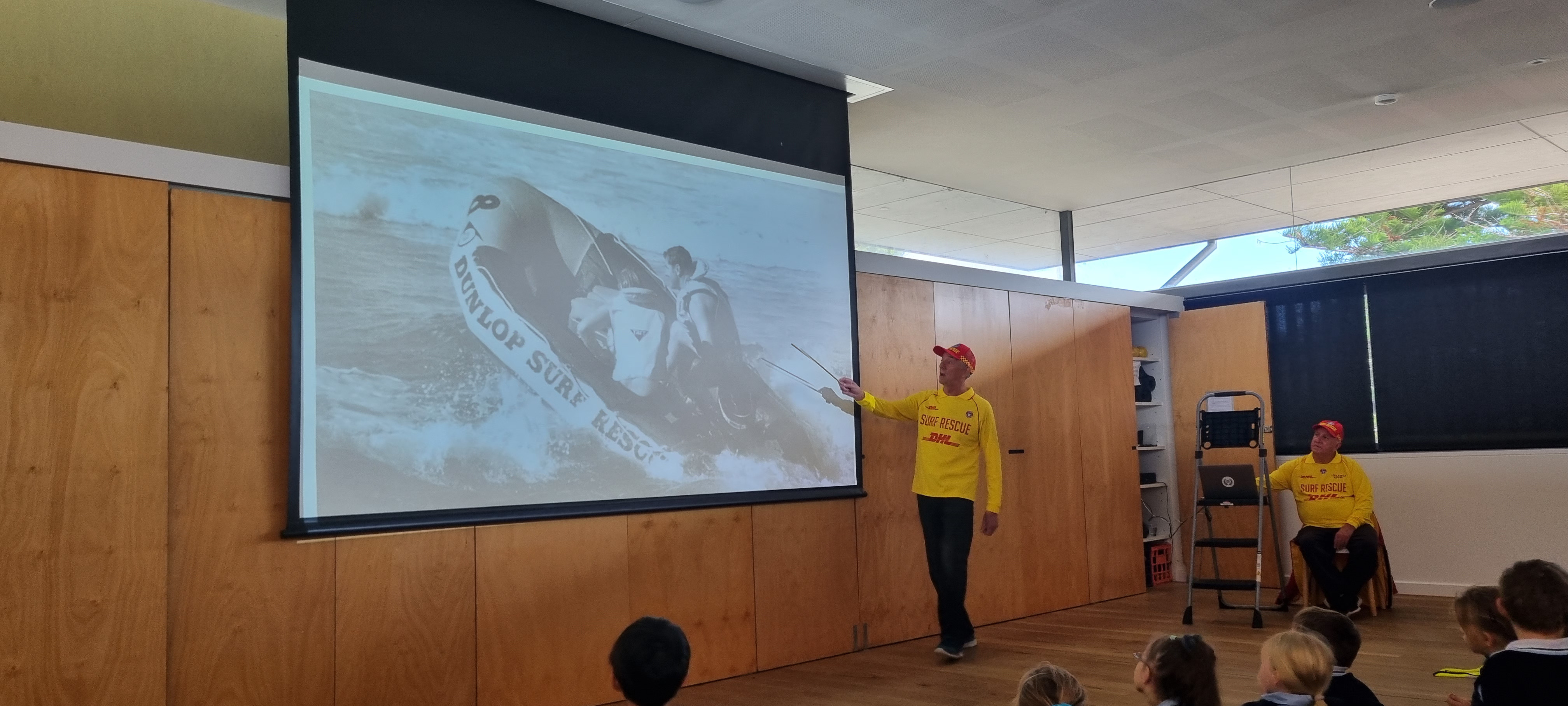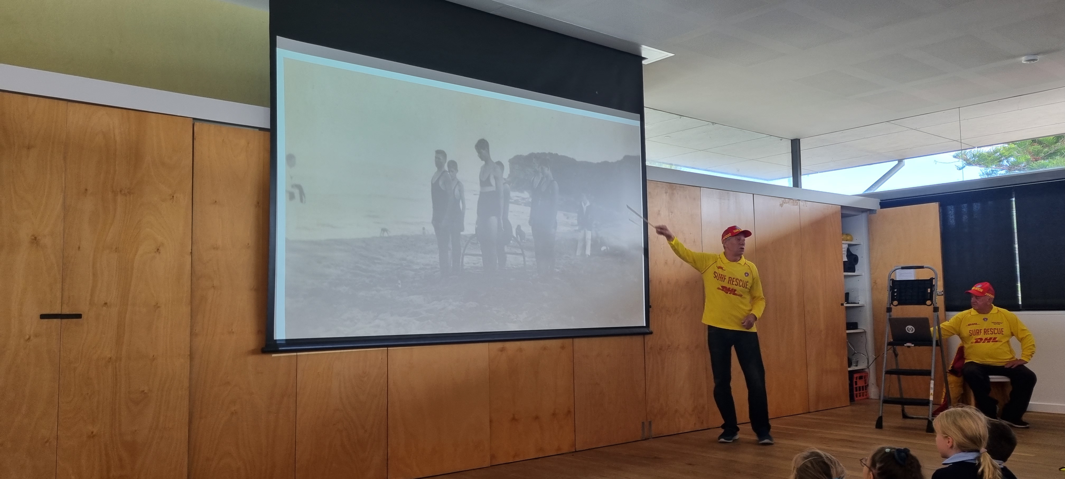 The kids asked lots of questions... clarifying how to get out of a rip, what to do if you're not a strong swimmer, are there lady lifesavers, and what if there's a shark right next to you!