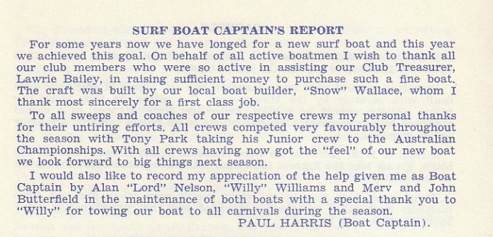 To conclude, across the last 7 decades crews have embraced all of these different surfboat manufacturers. Clubs at times shifted loyalties for reasons of perceived performance, availability and cost.