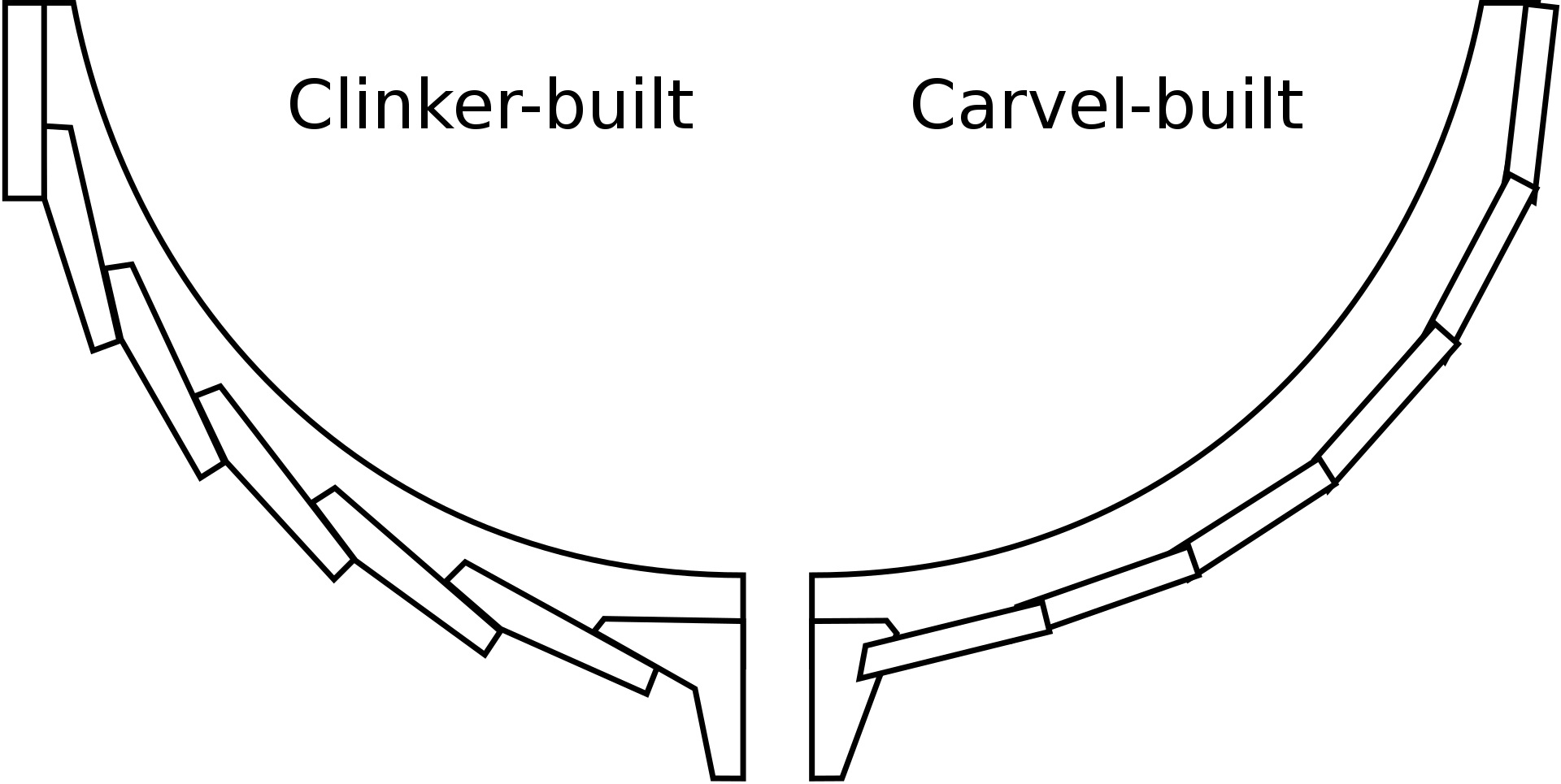 The earlier surfboats started out as a clinker and some builders also started to employ the Carvel build method (see diagram below). Both techniques had been around for centuries, but the clinker seemed to be the preferred method for the early surfboats, which were really the old Whaler style fishing boat. The early builders started playing with design during the 30s and that saw the start of a shorter boat with a lot of rocker or banana built into the keel. The clinker relied on a good tight lap joint to keep the water out, whereas the carvel design originally used a chalking method between the planks as in the old sailing ships. By the time this reached surfboats, the builders were using glues to seal the plank edges. The carvel plank needed to be thicker than the clicker plank and required more internal support, so were in fact a heavier option.