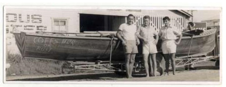 Through a desire for lighter boats using less timber, the obvious place to start was a complete overhaul of boat design. So, during the 50s, a major transition took place when the old timber Clinker and Carvel planked “Whaler Style Double Ender” boat was replaced with a lighter “Cold Mould Strip veneer” tuck stern style surfboat.