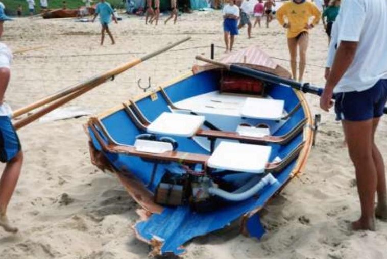 The first of the South Coast boats was built by Moruya Dentist Graham (Gus) McDonald around 1986. The first couple of South Coast boats were built under the SLSA Experimental tag, which allowed innovation in design, but the boat could still be used in competition while agreement was reached on specification change. The first boat featured no keel, which was now possible in Glass where the timber hulls had a full-length solid timber external keel. The second boat added a very small half-moon shaped keel under the Stroke feet which proved to be a very good design for manoeuvrability. This keel change started a debate by SLSA and finally a specified keel size was written into the specifications some years later. Gus also introduced the internal buoyancy boxing under his boat seats along with a centre channel designed to funnel the water straight to the pumps, giving the boat more buoyancy and a higher centre of gravity. Before Gus made this change, boats had an open internal design which allowed water to flow freely around the hull not always to the pump (singular at that time).