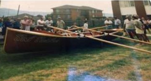 The first one the H A Fleming was built from teak and was very light. Our open crew won the state in this boat ending Caves Beach’s four-year winning run.