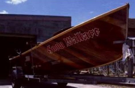 A few New Zealand made boats built by Jim Mackay also found their way to Australia. One of the NZ crews shipped a MacKay boat to Australia for the 1988 George Bass Marathon and left it in Australia at the end of the event. The big difference, (beside the very straight keel) to the boats being built in Australia was that this boat was manufactured using a single skin fibreglass method, no foam composite and the internals and gunwales were all timber.