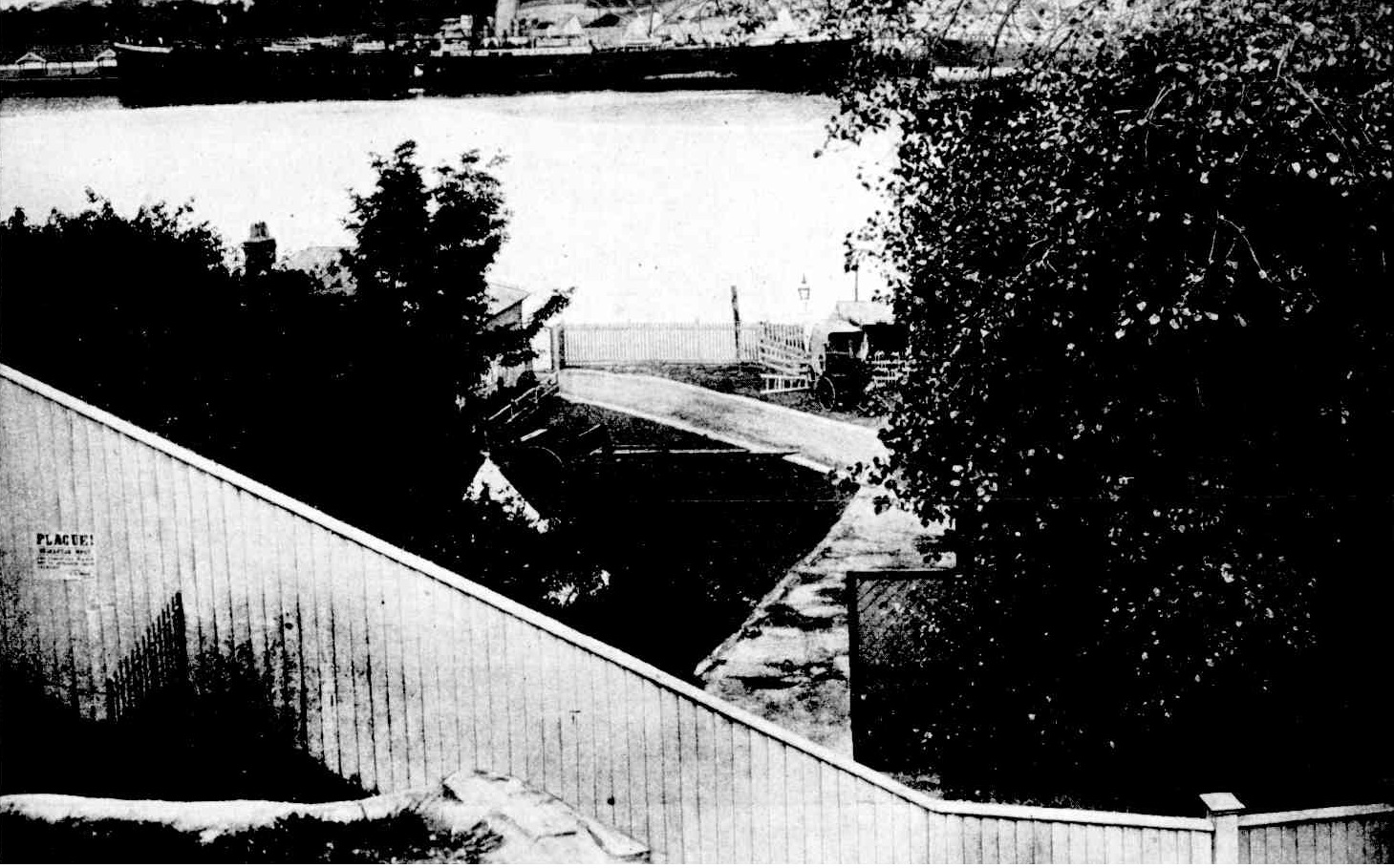 A case of smallpox developed on the Somerset, and she was quarantined, with all her passengers and crew, for three weeks. To commemorate the 50th anniversary of the occasion, Captain Green invited a number of personal friends to accompany him to the Quarantine grounds, one of the guests being Mr. Alfred Harrison (Hooper and Harrison), the well-known softgoods merchants, who was a passenger on the Somerset on that particular occasion.