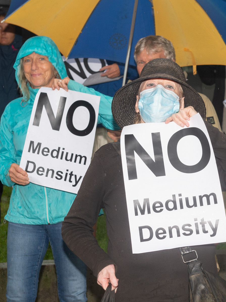 On Sunday March 21st the organisers of a rally in Mona Vale Park to protest about plans to have Pittwater carry the burden of required increased housing targets was cancelled due to this week’s weather event. The organisers knew they had to turn up to the local village green anyway, to meet those who they could not get word to, and found around 100 people turned up, umbrellas in hand, anyway.