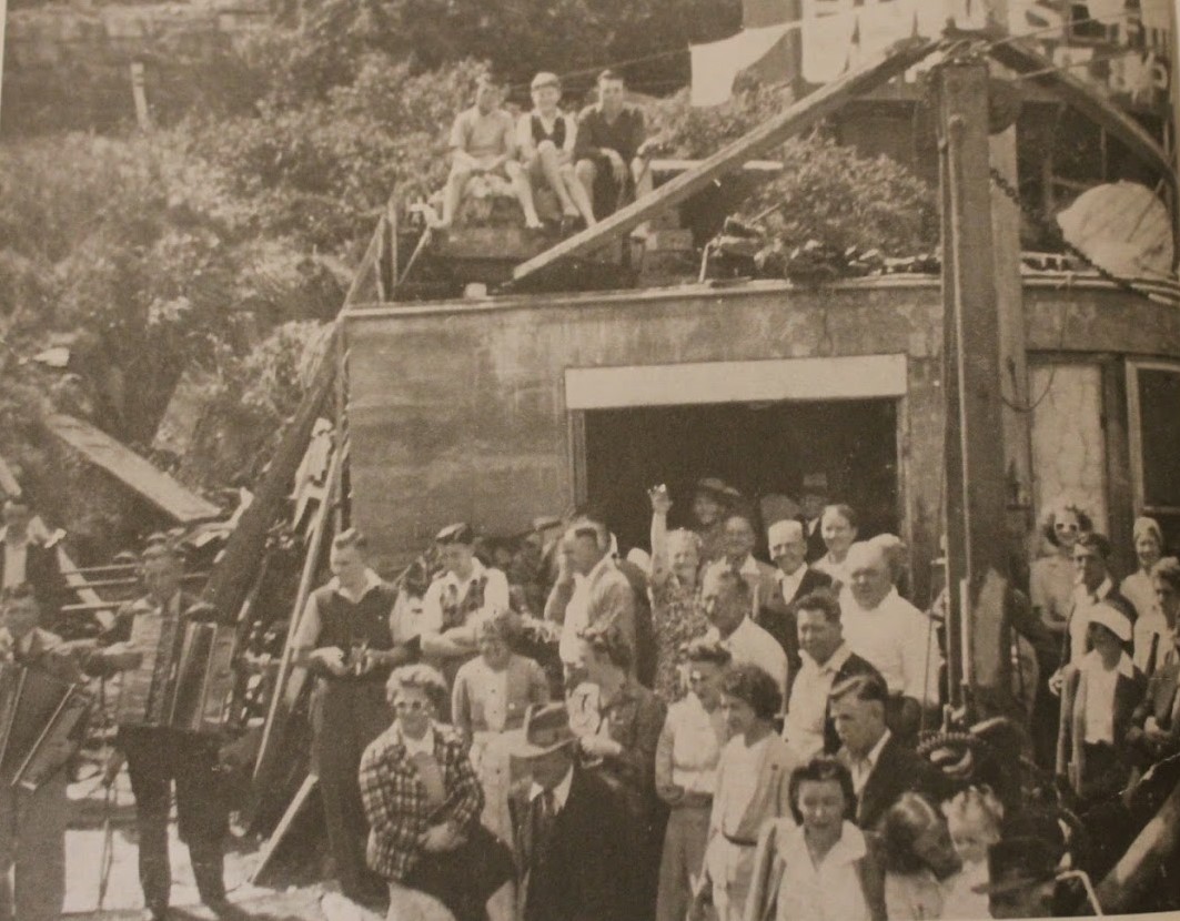 Tom Gilbert (in middle) atop Carl Gow's/Gonsalves Boatshed, 1949. Annual fundraisers were held in the park near the ferry wharf to raise funds to support the Randwick Hospital with the Carl Gow/Gonsalves Boatshed put into use as the 'Beer House'. This became an annual event: HOSPITAL BENEFIT AT PALM BEACH. The Randwick Auxiliary Hospital will benefit from a deep sea fishing and sporting day at Palm Beach tomorrow. Professional fishermen operating from Palm Beach and private owners are providing the trawlers. HOSPITAL BENEFIT AT PALM BEACH. (1950, March 18). The Sydney Morning Herald (NSW : 1842 - 1954), p. 5. Retrieved from http://nla.gov.au/nla.news-article27575067