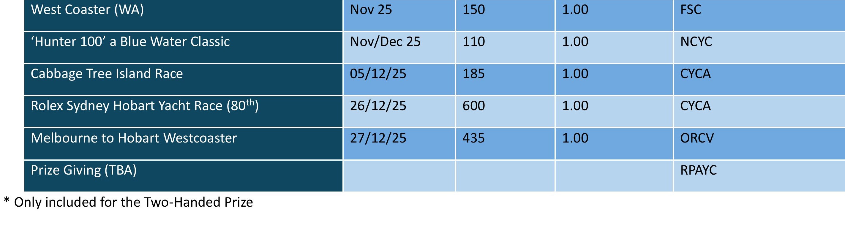 Now the 2025 AORC is ready to kick off, with the Notice of Series published at: https://rpayc.com.au/sailing/australian-ocean-racing-championship/