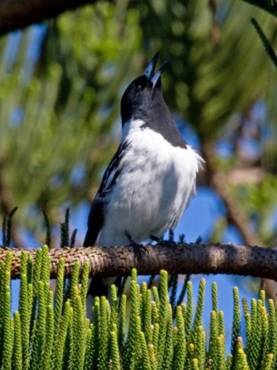 A Very Musical SpeciesThe pied butcherbird, a very musical species, provided a wealth of intriguing data for analysis by co-author Eathan Janney, a Ph.D. candidate in the Department of Psychology at CUNY's Hunter College. Janney based his analysis upon years of data collected and also analyzed by violinist and biomusicologist Hollis Taylor of Macquarie University, who has previously published extremely detailed analyses of butcherbird songs. "Since pied butcherbird songs share so many commonalities with human music," Taylor writes, "this species could possibly revolutionize the way we think about the core values of music."