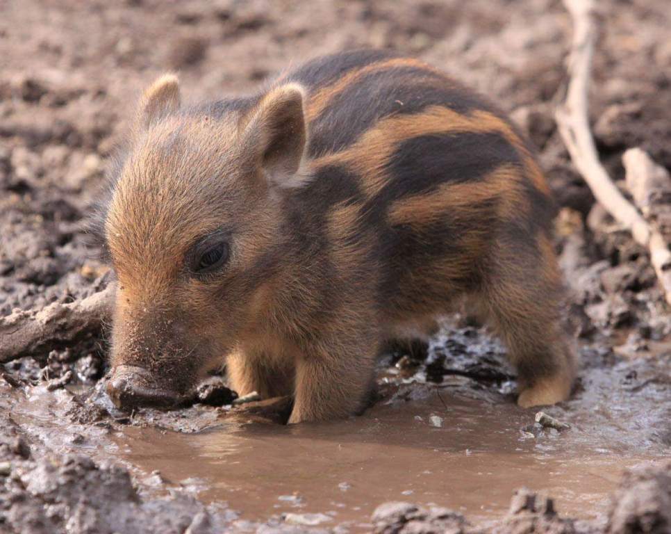Tiny Wild Boar In Tiny Mud Puddle