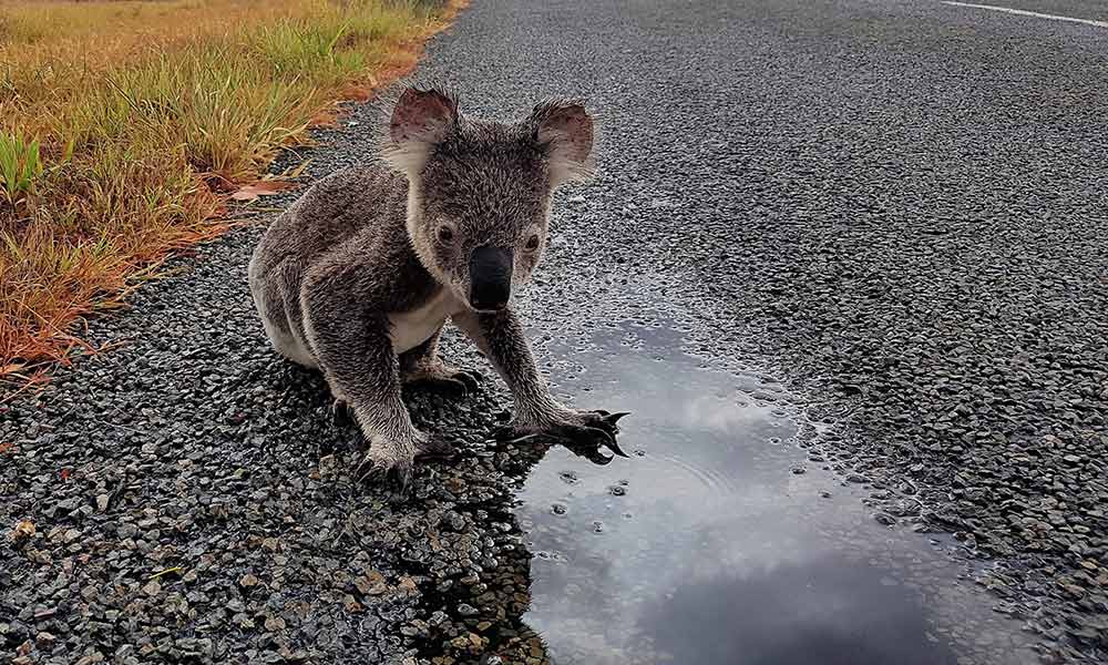 Koala drinking beside a central Queensland road, March 2017 © Sue Gedda / WWF-Aus