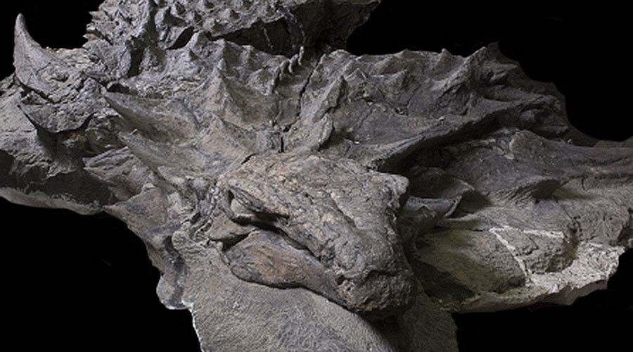 See the remains of a nodosaur, the best preserved fossil of its kind ever found. Discovered by miners in Alberta, Canada, it's a 110 million-year-old type of plant-eating armored dinosaur. The animal has two 20-inch-long spikes on its shoulders, and, in life, it was 18 feet long and nearly 3,000 pounds.