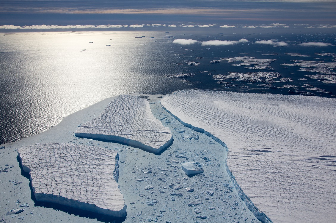 Image: flat topped icebergs created by the calving. Credit: David Gwyther.