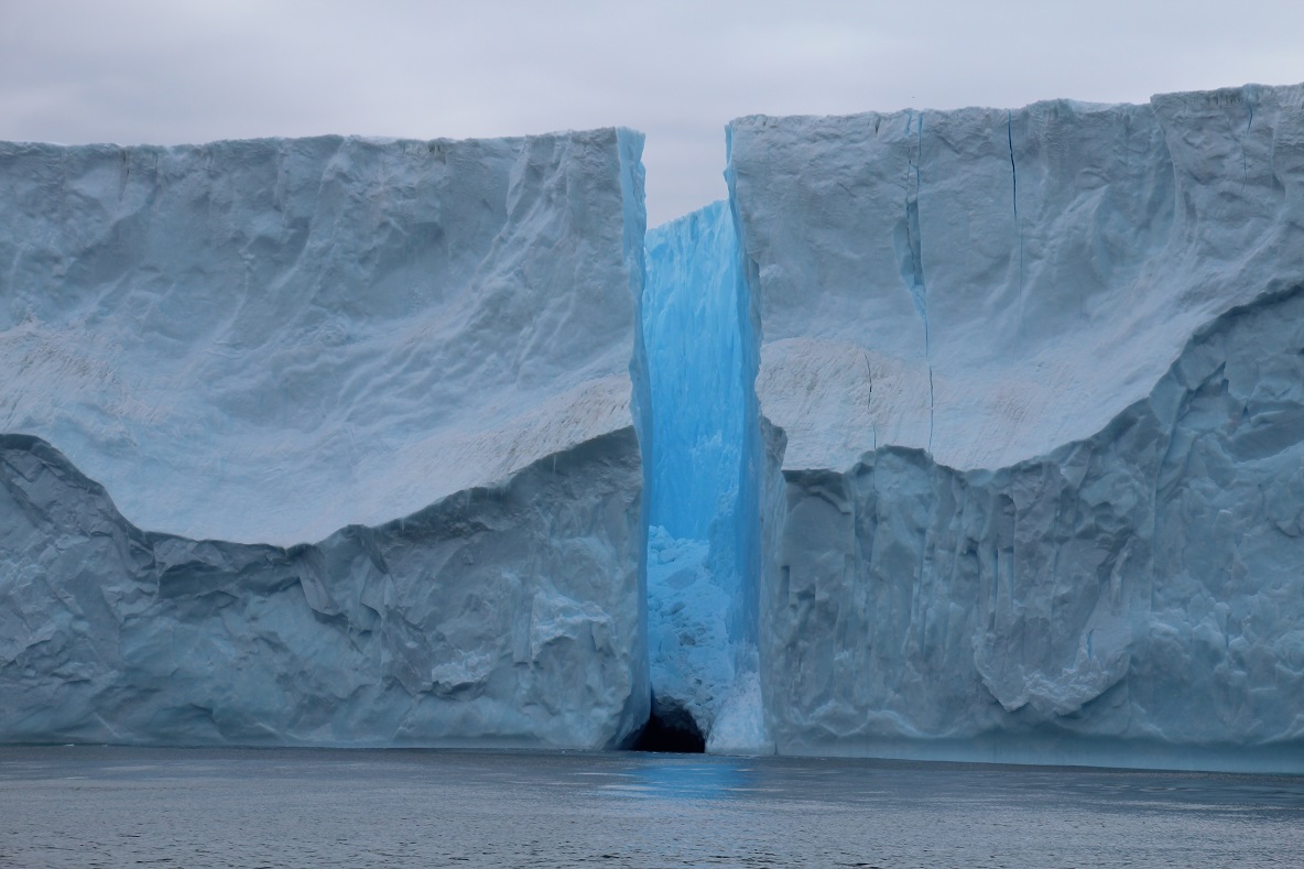 Image: the widening crack on the southern edge of the glacier as it calves. Credit: David Gwyther