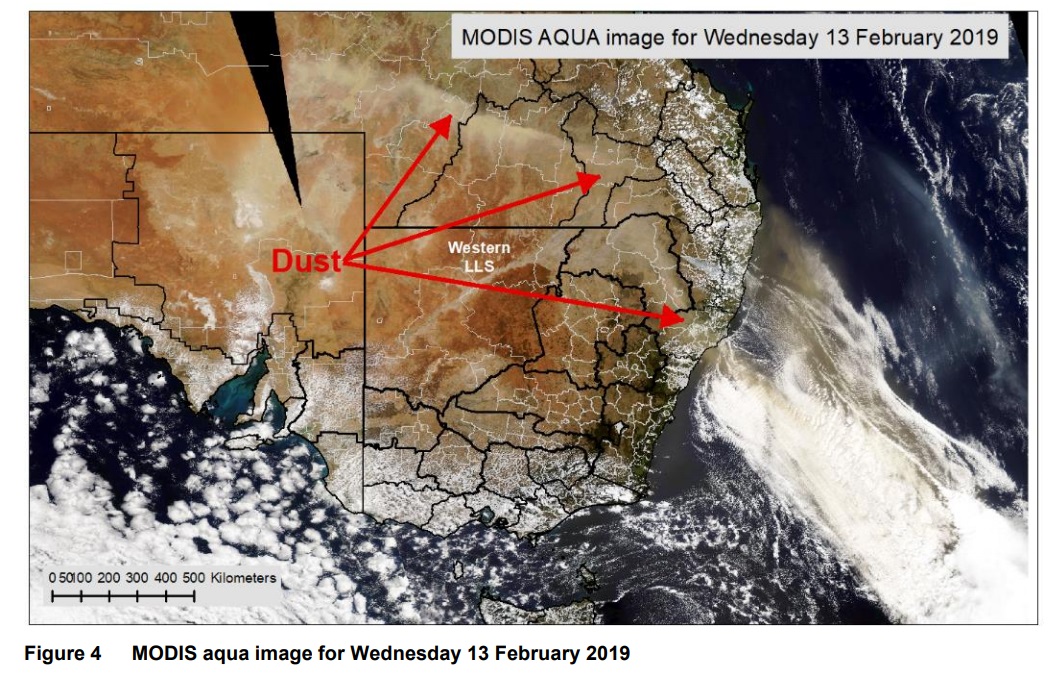 The dust plume stretched nearly 2000 kilometres (Figure 4). The Bureau of Meteorology estimated the amount of soil loss of the Australian coast at around one million tonnes for that event.