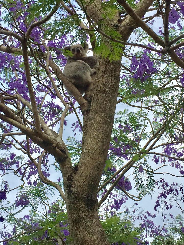 November 25th, 2019: A Sydney Wildlife koala rescuer today saved this koala in Kentlyn, near Campbelltown (western Sydney). This beautiful girl found herself in a jacaranda tree in a yard next to a yard with a dog. She was rescued and released into the Bushlands nearby for her safety.