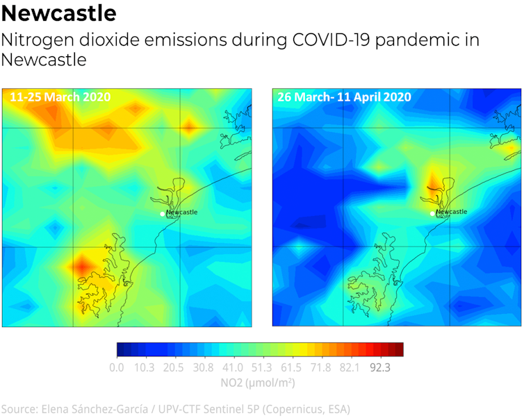 On the other hand, nitrogen dioxide concentrations have actually increased by 20% for Newcastle, the country’s largest concentration of coal-burning heavy industry, and by 40% for Melbourne, a sprawling city with a high level of car dependency. Perth does not show a significant change.