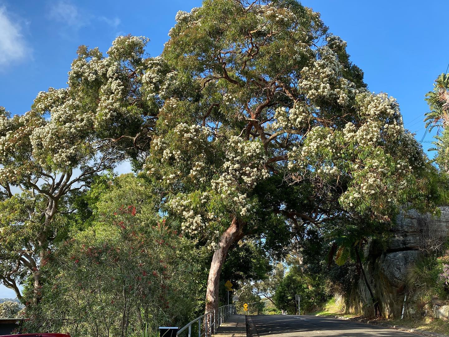 The coastal angophora are flowering and look like they are crowned in snow. The bees are feeding with a loud droning hum. - photo and caption by Selena Griffith