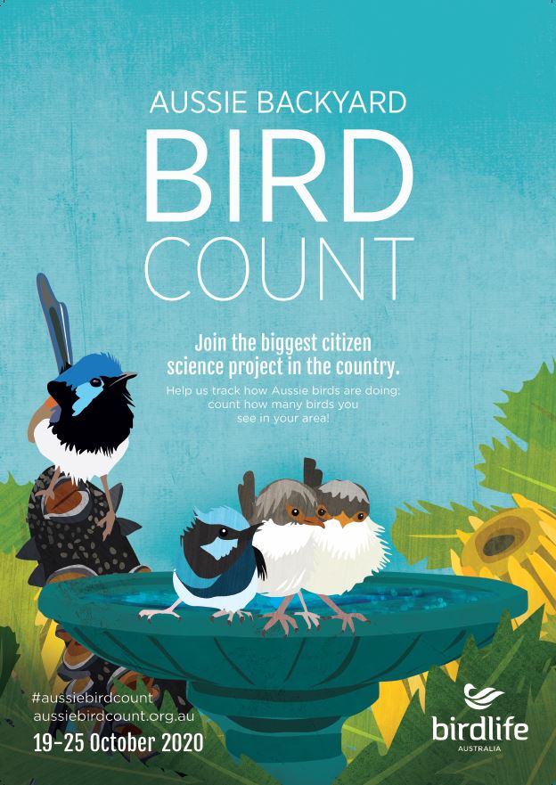 As we go to press 4, 105, 433 birds have been counted so far by Australians in the 2020 Aussie Backyard Bird Count. This year's statistics for our area and kind will be published once available - in the meantime, you still have until 4pm today, Sunday October 25th, to get your count in.