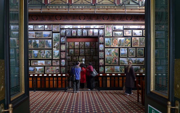 North gifted her botanical collection to Kew Gardens along with a gallery to house it. She arranged the paintings and also the decorations surrounding the doors to the gallery. Hence the unique design and global feel of the gallery interior. It opened in 1882.
